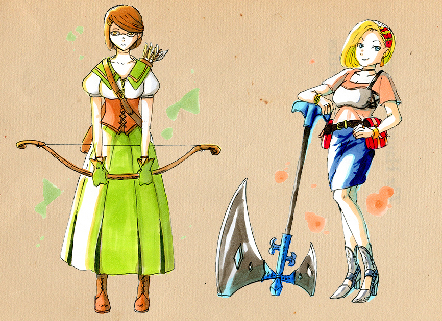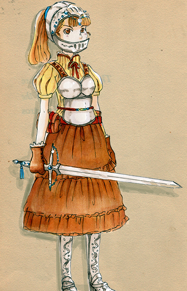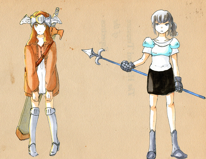 現代少女っぽいファッション+ファンタジーぽい武器