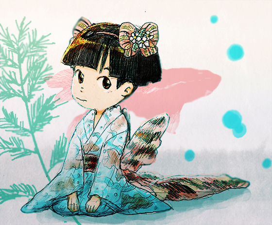 金魚帯の浴衣。(下絵)